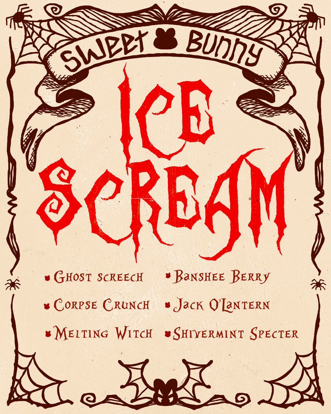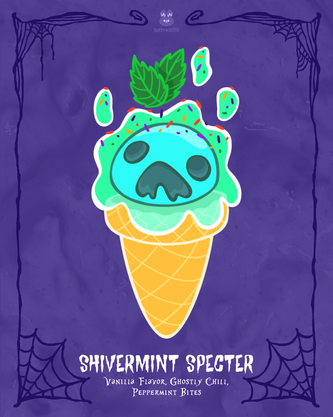Ice Scream is my Halloween illustration project inspired by the spooky season’s mix of fright and delight — imagined as limited-edition treats from Sweet Bunny, Coco’s charming artisanal ice cream shop.